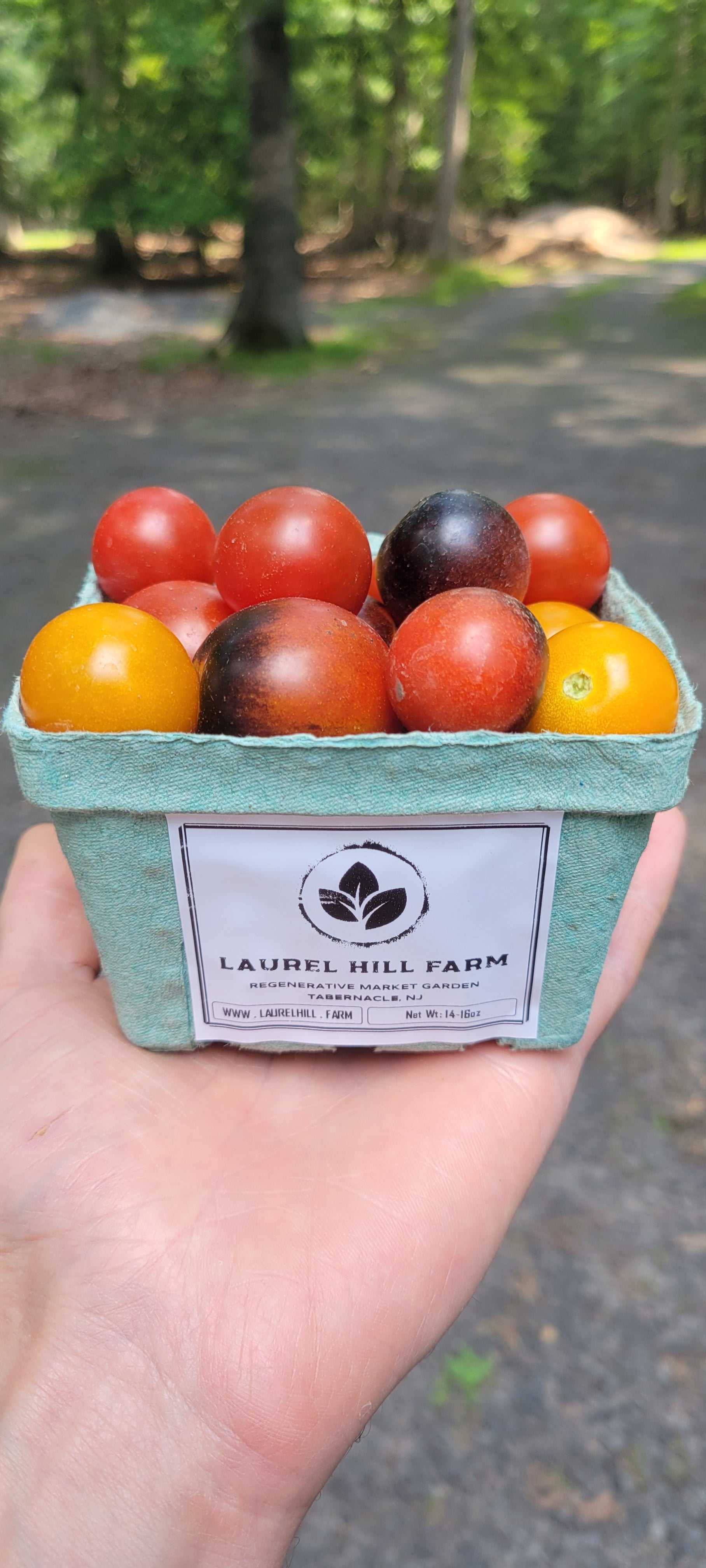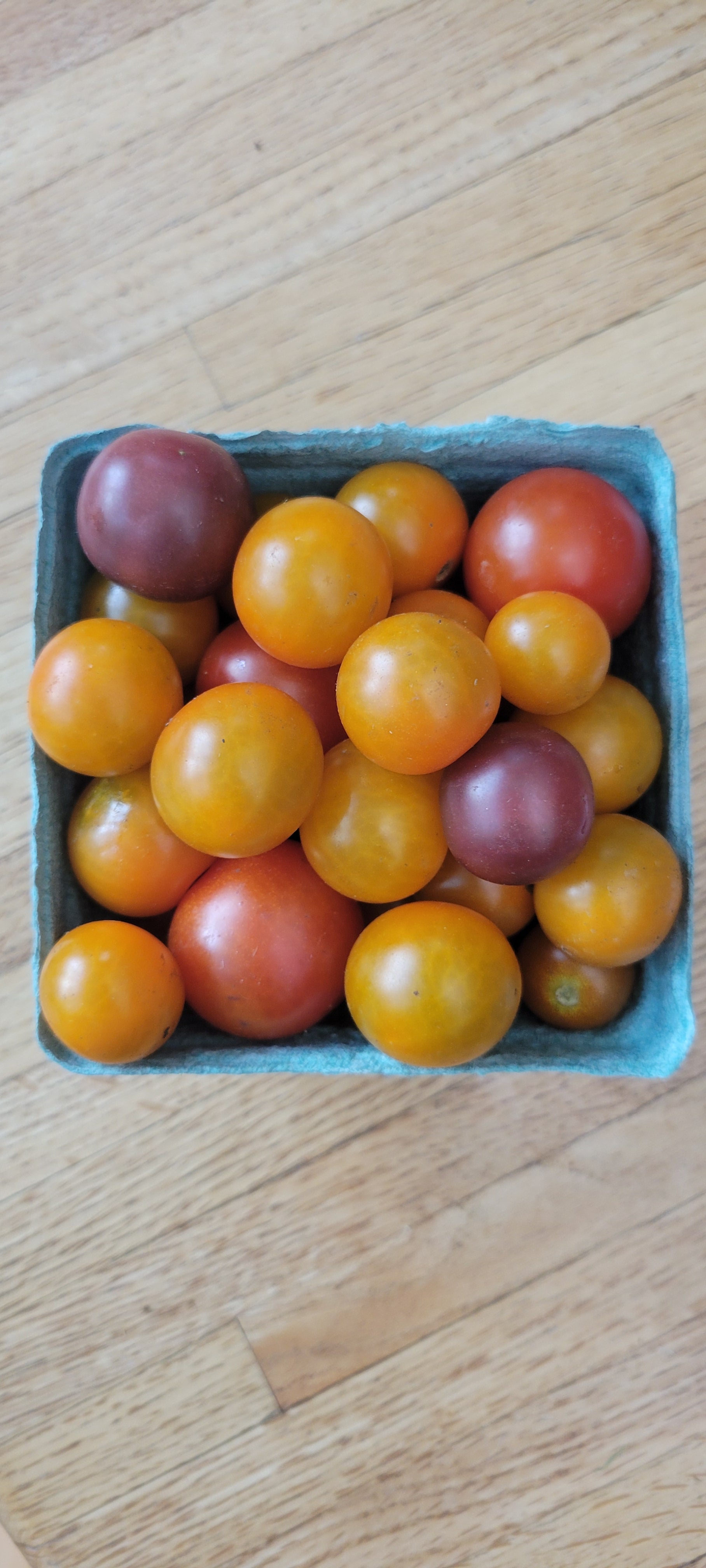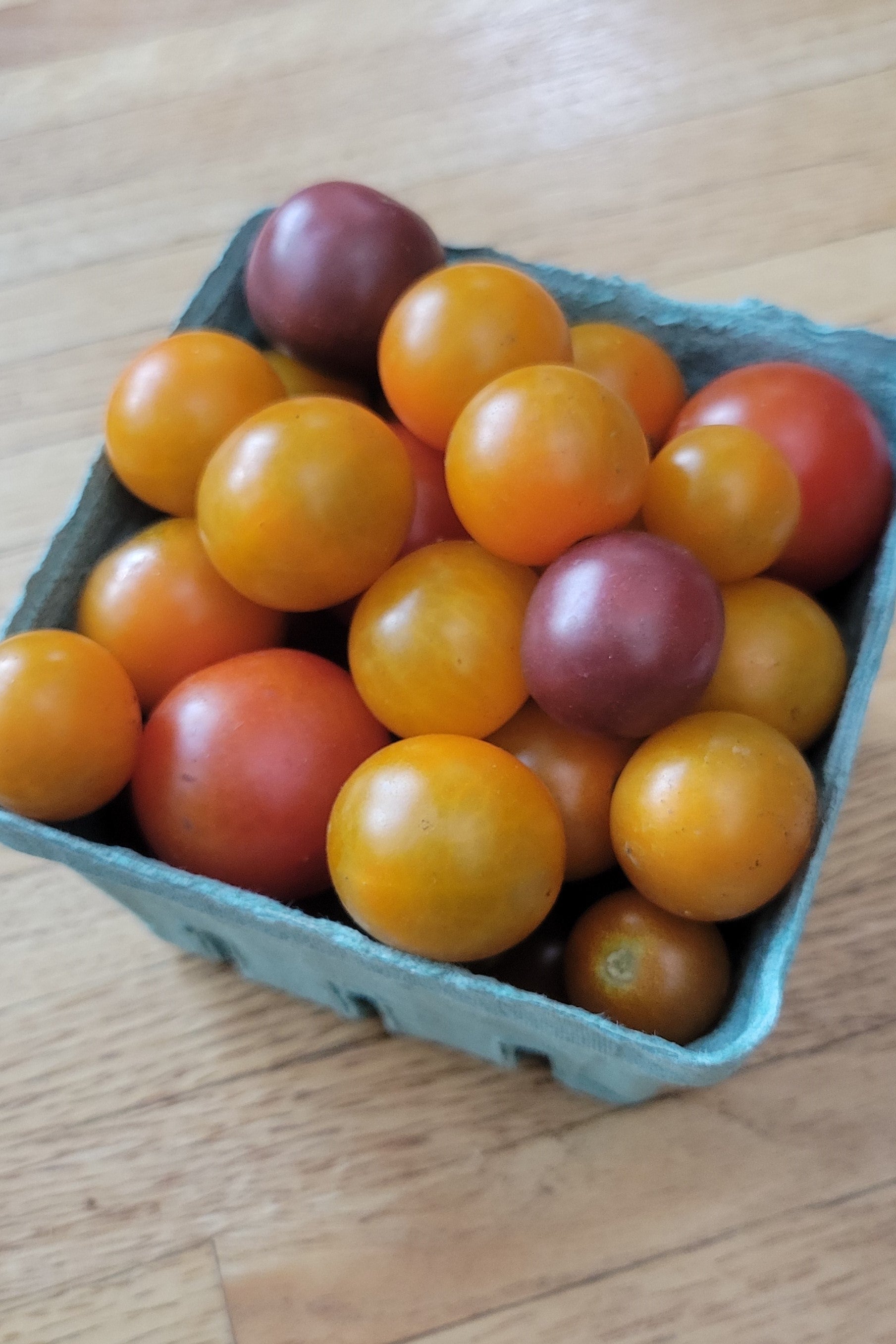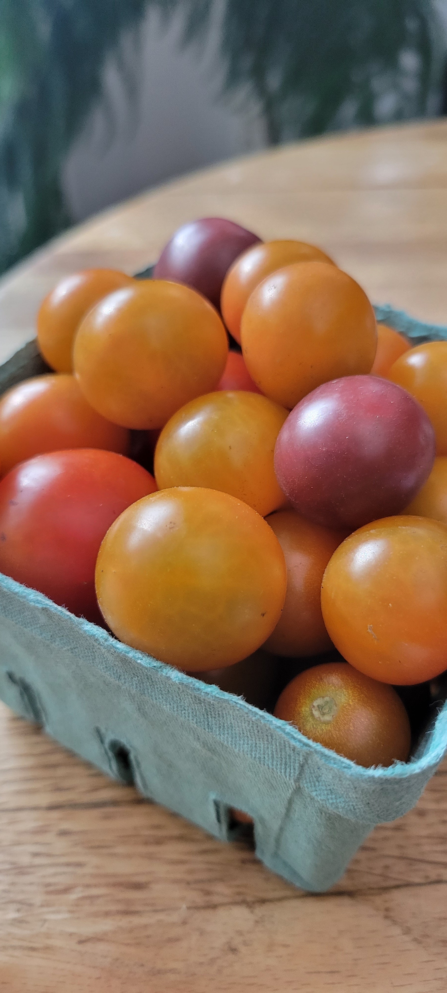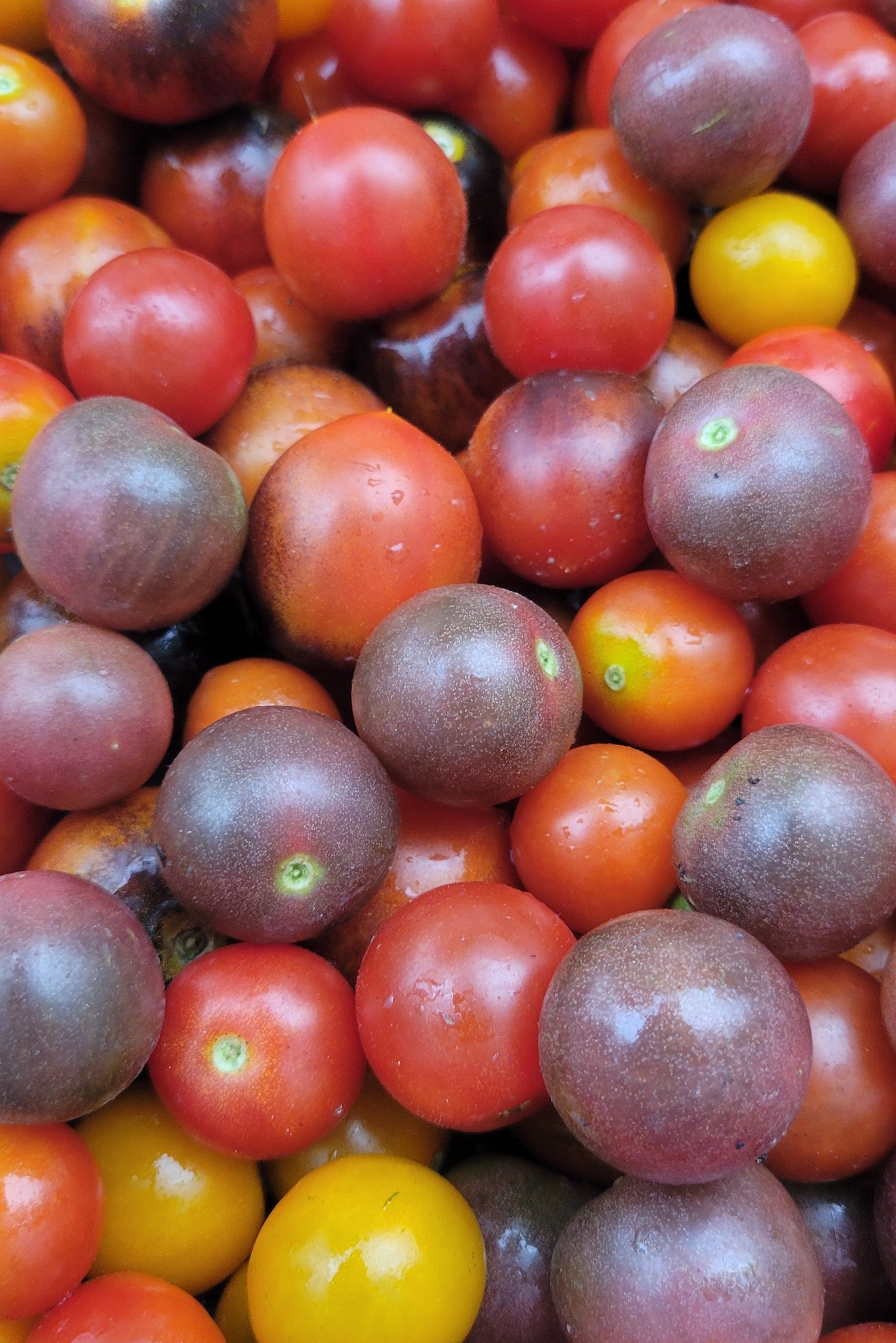 A mixed variety of delicious, in season cherry tomatoes that are perfect for fresh eating or cooking.
