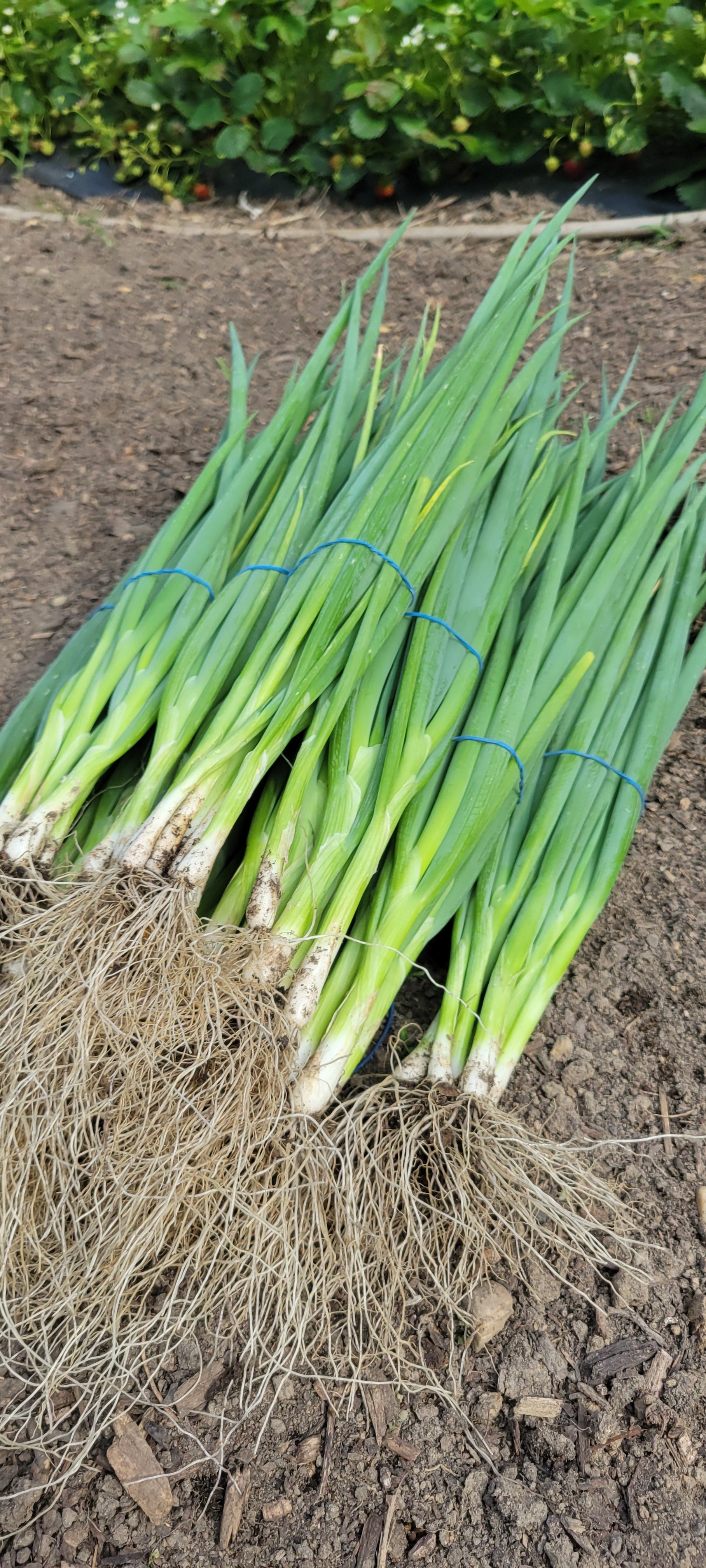 Delicious and crisp with classic onion flavor. Eat it root to leaf tip. At 18-24" tall these are much taller and more substantial than store-bought green onions/scallions.