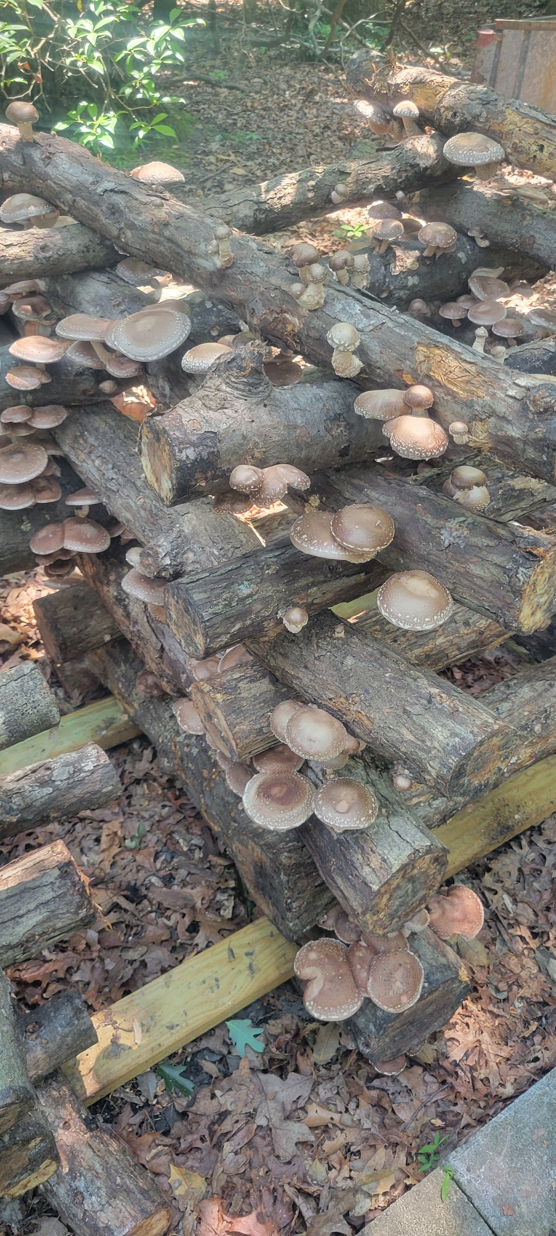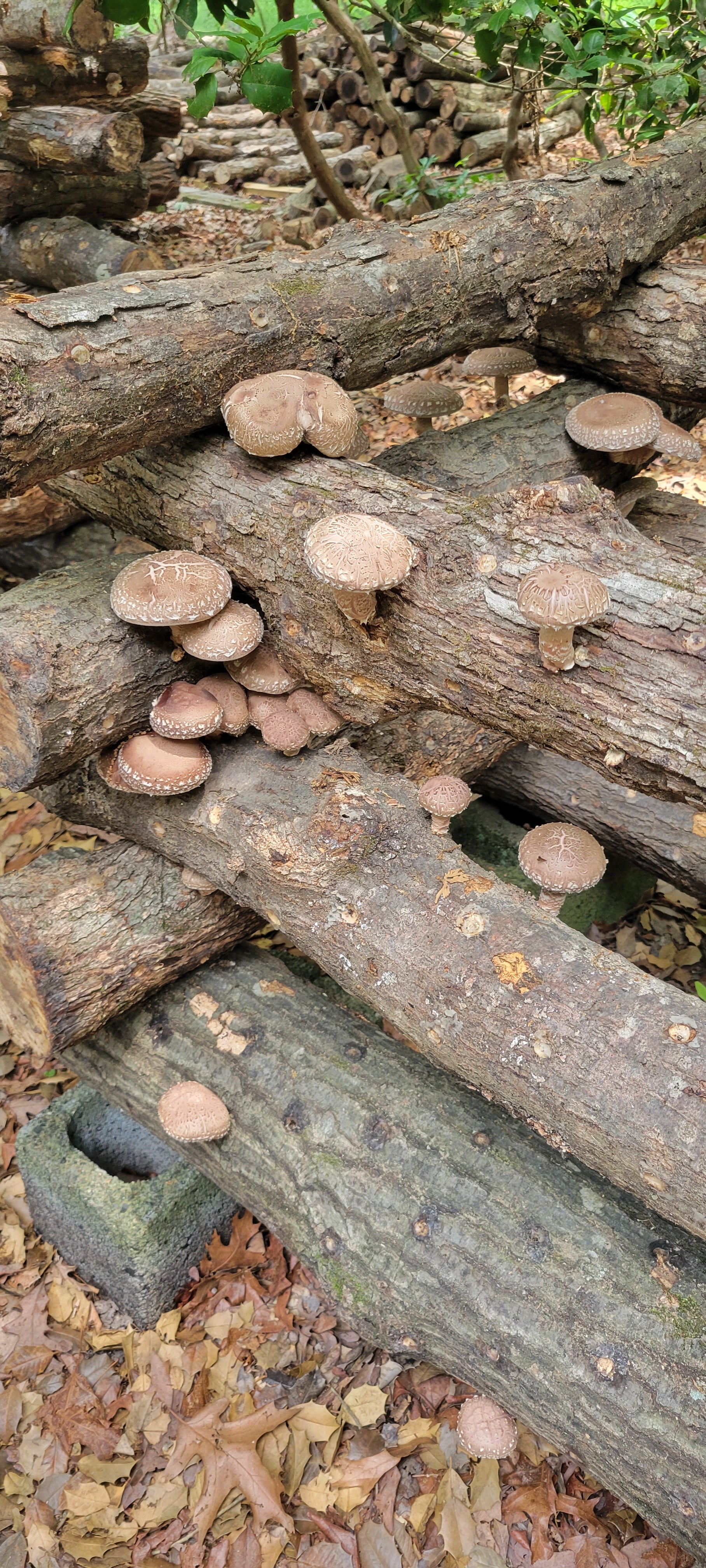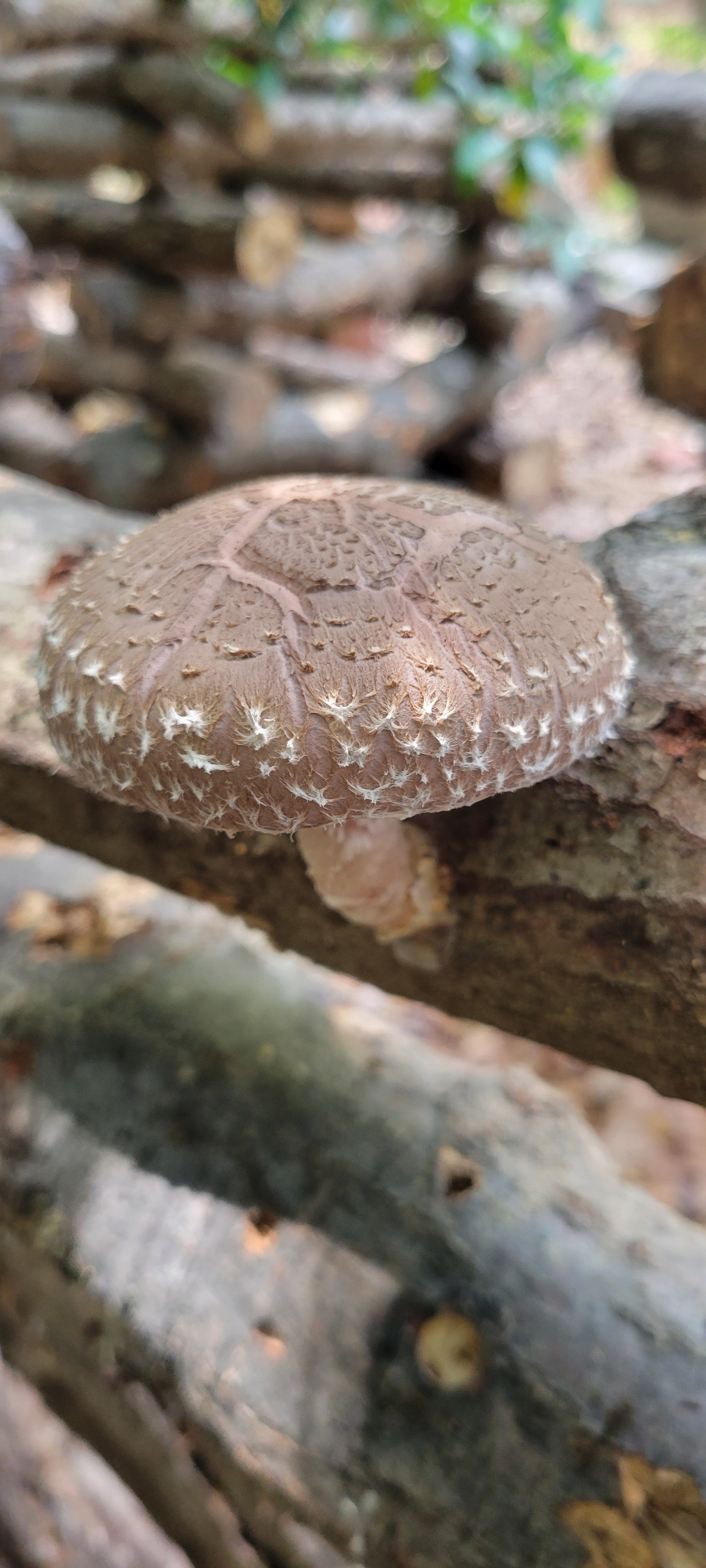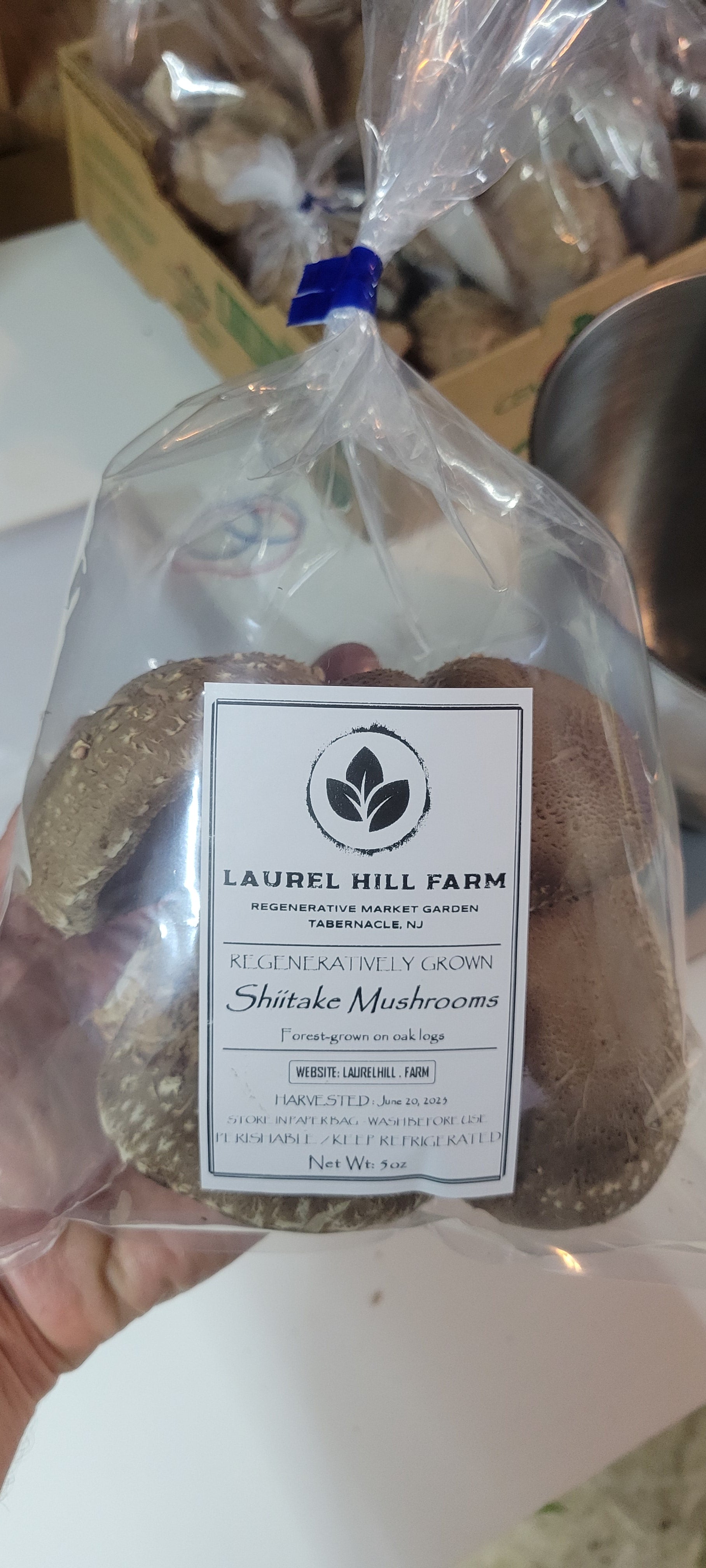 Forest-grown shiitakes. Grown on oak logs. Mushroom size varies.